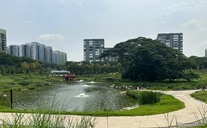 A link bridge from the mall goes over Bidadari Park Drive. It will bring you to Bidadari Park and Alkaff Lake.