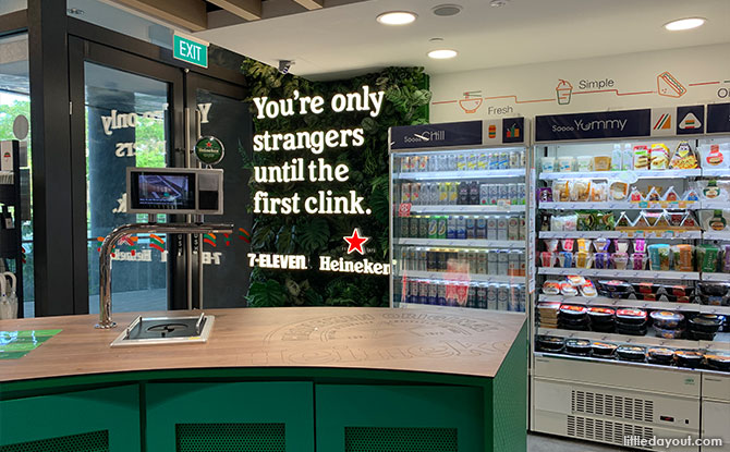 At The Woodleigh Mall’s 7-Eleven, which faces out towards Bidadari Park Road, there is a reverse draft beer counter!