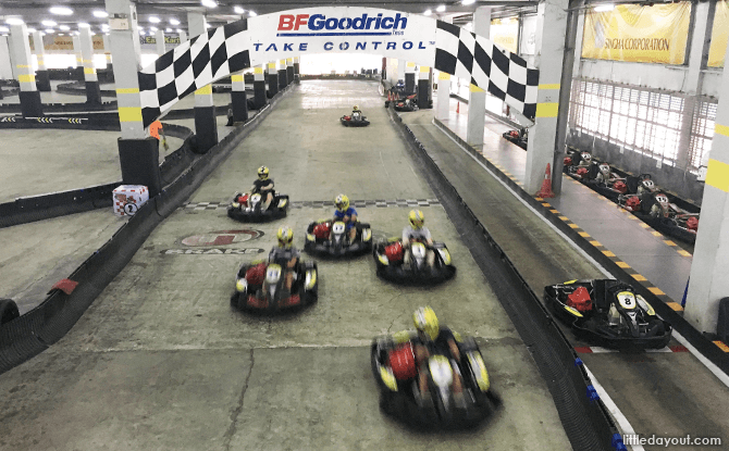 The adult go-karts can go up to 35 km/h while the kids’ karts can reach 25 km/h.