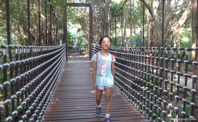 The African Treetops walk-in aviary at Jurong Bird Park has a fun suspension bridge where you can view the birds flying all around. Check out the full story here.