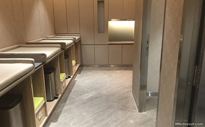 There is also a hot and cold water dispenser, a sink and a cushioned diaper changing station- family-friendly facilities for parents to do emergency feeds or diaper changes.