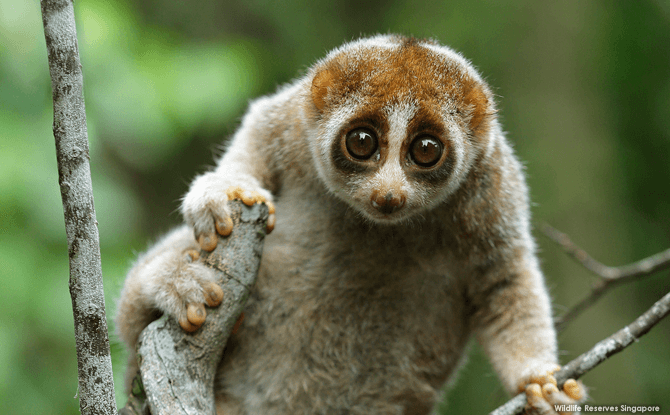 With its round head, huge eyes and deliberate movements, the Slow Loris looks cute and cuddly. However, did you know that it is one of the few mammals that has a toxic bite. This is obtained by licking a gland under its arm that secretes toxins. Preferring to sleep during the day, its huge eyes allow this Southeast Asian native to see at night as it goes about foraging for food. The Slow Loris can be found along the Leopard Trail.