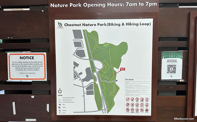Do take note that the Chestnut Nature Park car park is only open from 7 am to 7 pm. If you miss the 7 pm deadline to remove your vehicle from the car park, you will have to wait till the next morning to drive out.