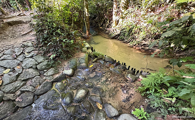 The Nature Trail takes hikers along dirt tracks, up and down undulating terrain. Keep a lookout for durian trees and remnants of old kampong buildings. A highlight of the Nature Trail is the bustling stream that you will encounter along the route.