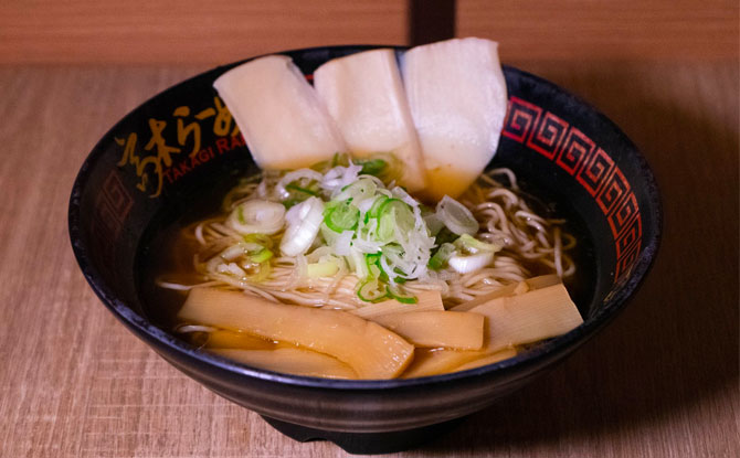 The star of the menu is it’s signature Takagi Ramen uses handmade Hakata-style firm ramen noodles in Takagi’s original Japanese Tonkotsu broth enhanced with a light Shio seasoning infused with the subtle aroma of kombu and bonito. Each bowl of ramen is then topped with tender, slow-braised cha shu pork slices, thinly sliced green scallions and blanched silver sprouts.
