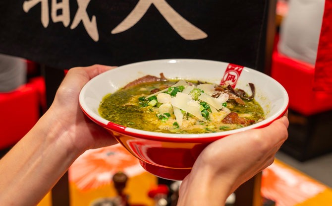 It is also here that you will find some uniquely coloured ramen broths such as the Green King ramen which is made with a fusion of fresh basil and olive oil with delectable tonkatsu. This unique bowl of ramen has richly marbled cha shu and finally garnished with grated parmesan cheese. Read more here.