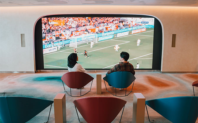 Other new amenities in the transit area include a new TV lounge on a large LED screen.