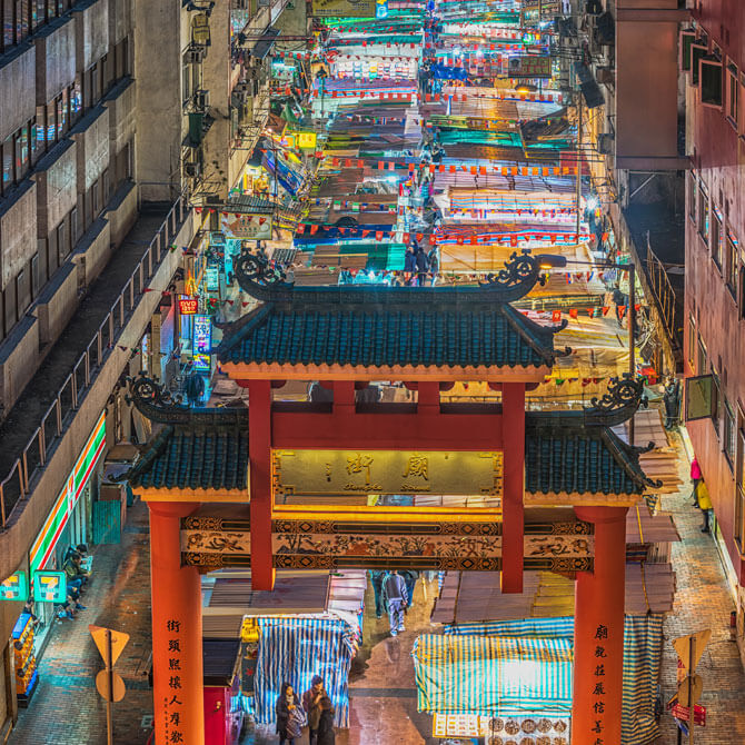 Hong Kong is famous for its shopping and when the sun goes down, the shopping carries on into the night at the night market. The lively Temple Street Night Market in Kowloon is where you can browse through various stalls selling everything from snacks to knickknacks.