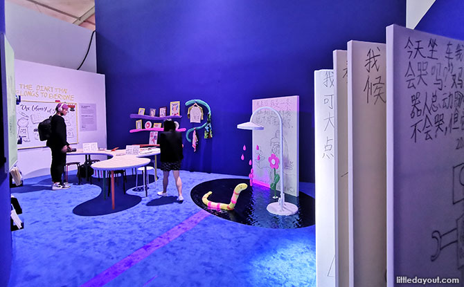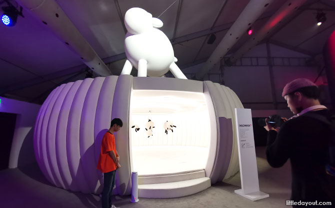 One of our favourite rooms is the Insomnia room, designed by artist MOMOSHOU. A gigantic baby mobile made of sheep hangs and we are invited to just lay down, dream and “sleep like a baby”. Except we all know that babies aren’t the best of sleepers. Don’t miss that familiar smell in the air – a whiff of that talcum powder is reminiscent of diaper-change days.