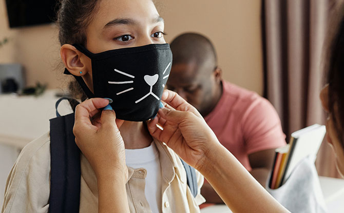 Packing a mask and other essentials into a reusable, washable bag would be helpful. Label your child’s name on it or sew it on. We’d recommend bringing extra masks to school in case they get misplaced or dirtied. Teach your child to fold and place the mask into the bag after use.