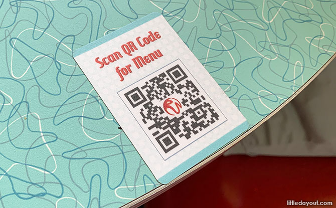 Scanning a QR code on the table brings up the menu. You can leisurely look it at the table and decide on what to get before joining the queue to order the food.