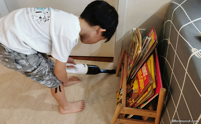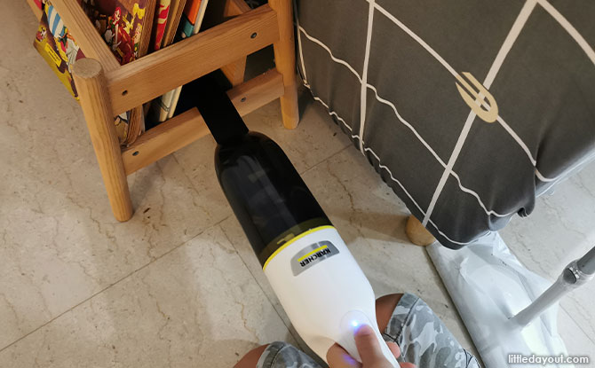First, it weighs only 0.65kg, light enough to dismiss the complaints about chores. The handheld vacuum is powerful without the noise. It picks up tiny crumbs easily and helps with messes that children often leave behind. The children also used it for the interiors of the car as well as on their keyboards, shelves, desks.