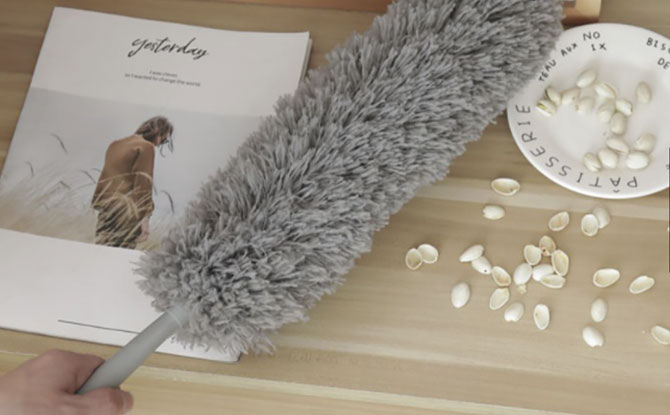 Bookshelves are one of the places where dust gathers. Get your child’s help to use the duster and dust off the layers of dust off books, toys on display, ornaments. This duster can extend to 122cm long and can be used to clean places out of reach. It can also be bent to clean the top of shelves, TV screen, monitors.