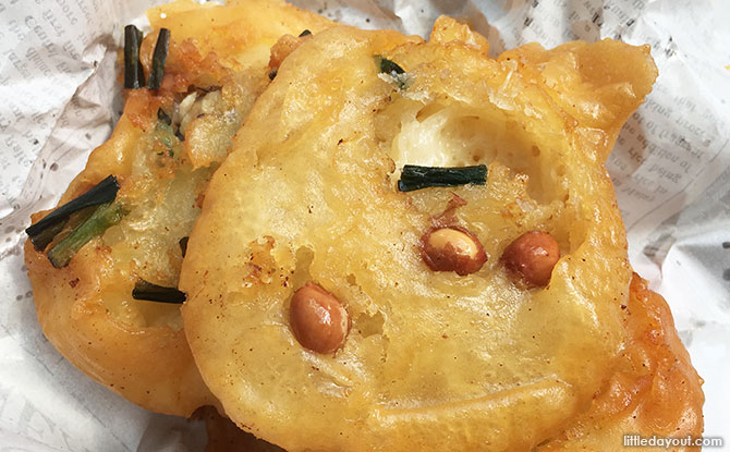 Be sure to try the Orh Pia. Also known as UFO, it is a battered snack made with fillings of marinated minced pork, oyster and parsley. The store selling it is facing the shophouses away from the main thoroughfare so you will have to seek it out.