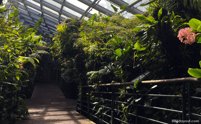 The tropical Montane Orchidetum simulates the experience of ascending through a tropical montane forest and showcases a diversity of orchids and other plants from the rich low to high-elevation mountain forest. It includes a Cool House, the Yuen Peng McNeice Bromeliad Collection, the Tan Hoon Siang Mist House and the Secret Ravine. Read more about it here.