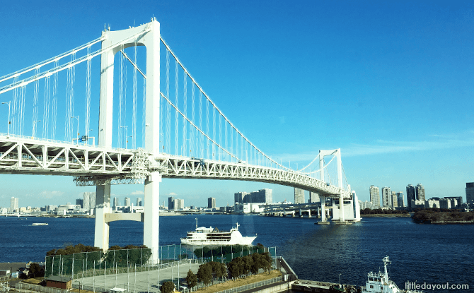 It is also possible to take the underground Rinkai line to the Tokyo Teleport station at the centre of Odaiba but you won’t be able to get a view of the island as you arrive.