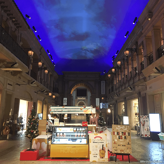 The Venus Fort shopping centre is modelled after a 17th century European town and has a ceiling painted to look like the sky. Palette Town is also where the large Toyota MEGAWEB City Showcase attraction is located. The closest train station to Palette Town is Aomi station on the Yurikamome line.