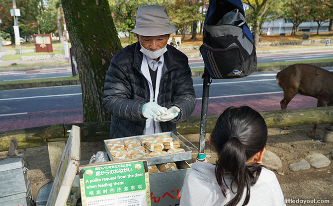 Tummies filled, we picked up some shika senbei to feed the deer.