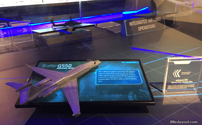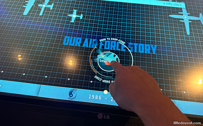 A big digital console is the centrepiece of the first room. Using a multimedia touchscreen display, visitors can learn more about the aircraft used by the RSAF.