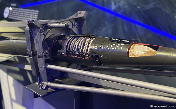 There is also a heat-seeking missile, assuringly marked “INERT”, on display.