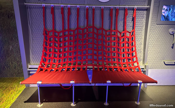 You can also try taking a seat on one of the jumpseats you would find on a transport plane.