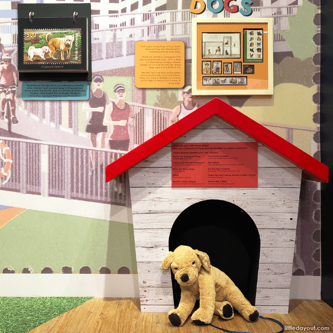 Snuggle up to the many soft-toy dogs located all over the exhibition space while learning about dogs. Kids can look at stamps featuring adorable puppies and look out for educational information on the life cycle of a dog, phrases inspired by dogs and even watch videos about dogs.