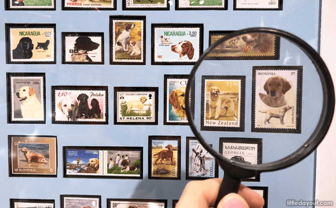 Children can also have their hand at grooming dogs at the interactive doggy parlour, complete with a bathtub, grooming tools, and of course lots of beautiful stamps that they can appreciate as well! Try to find the various dog breeds in the stamps on display!