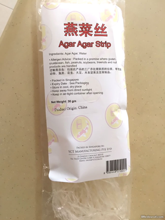 - 10 grams of agar agar strips (1 packet of jelly strips is about 30 grams), soak for about 1 hour