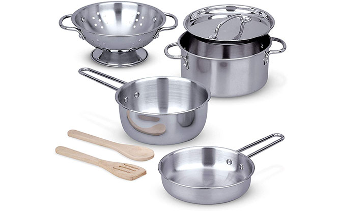 Melissa & Doug Stainless Steel Pots and Pans Pretend Play Kitchen Set for Kids