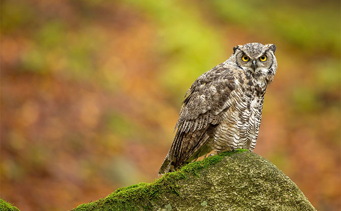Great horned owls are iconic nocturnal birds of prey known for their distinctive ear tufts and powerful talons. These majestic owls can be found throughout North and South America, inhabiting a wide range of habitats including forests, deserts, and urban areas.