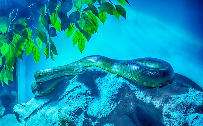 When it comes to size, the green anaconda doesn’t disappoint. These massive snakes can reach lengths of up to 30 feet and can weigh over 500 pounds. Their colossal bodies are covered in a beautiful pattern of green scales, allowing them to blend seamlessly into their lush, aquatic habitats.