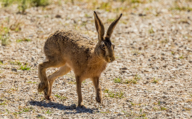 Hares can be found in a variety of natural habitats, including grasslands, woodlands, and deserts. They are widespread across various ecosystems, adapting to different environments. One well-known species of hare is the jackrabbit, which is found in North America. Jackrabbits are known for their large ears and powerful hind legs, allowing them to evade predators and navigate through their desert habitats.