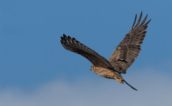 One species of harrier that is well-known is the Marsh Harrier (Circus aeruginosus). These birds are found in Europe, Asia, and parts of Africa. They have a distinctive flight pattern with deep, slow wingbeats and a characteristic ‘v’-shaped posture.