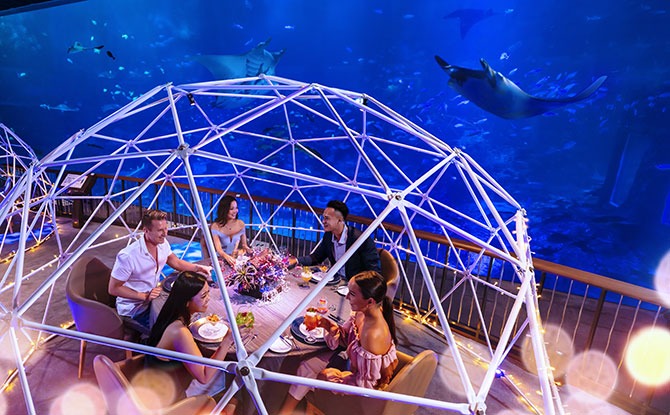 From 4 September to 31 October 2020, experience on a theatrical “underwater” dining experience, Aqua Gastronomy, at S.E.A. Aquarium’s iconic Open Ocean Habitat.