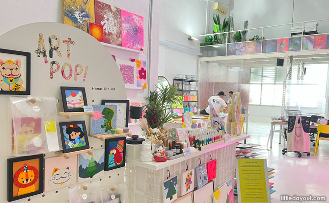 Housed within Ubi’s industrial estate, Art Pop Studio welcomes you into a sunlit white creative space that “pops” you right into the mood to create.
