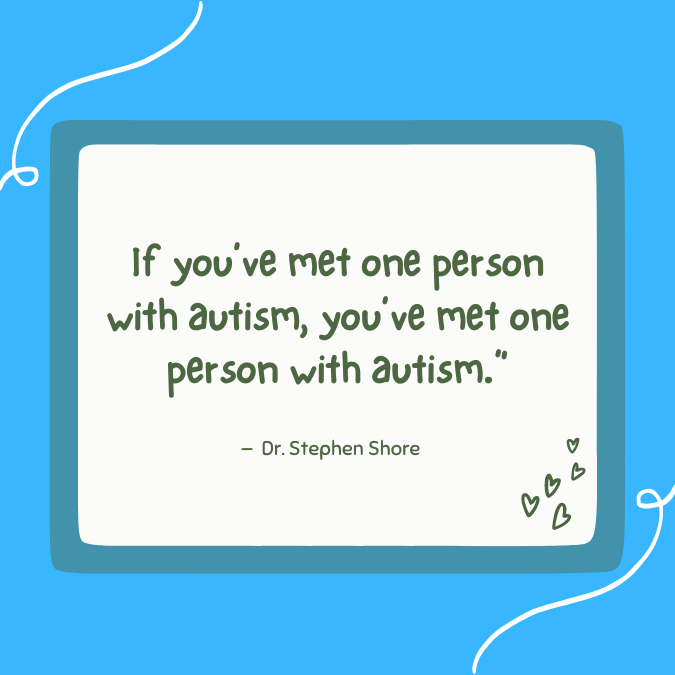 We are all unique individuals, with our own quirks, strengths and weaknesses. Similarly, people with autism are fellow human beings with their own characteristics.