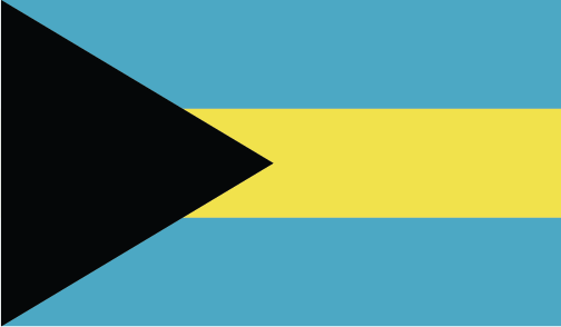 The flag of the Bahamas consists of a black triangle situated at the hoist with the national flag on the right and the Bahamian coat of arms centred on the outer half of the flag.