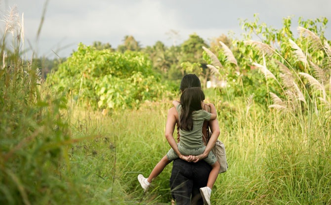 Evening: M had awoken, and as a family we began the Campuhan Ridge Walk, a scenic trail lined with tall grass and distant views of the valley. We passed by a busker at the start of the trail. The kids were enchanted by the mimosa plants along the trail—the way the leaves closed when touched. It wasn’t the easiest trek because of tropical heat, but I’m glad we pushed through.
