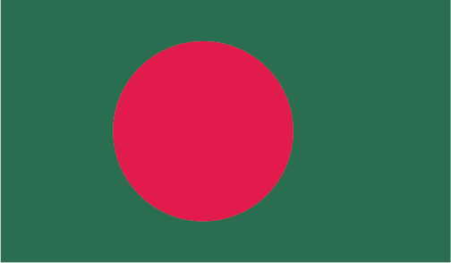 The flag of Bangladesh is a red disc on top of a green field. The red disc represents the rising sun and the sacrifice of those who fought for the country’s independence from Pakistan.