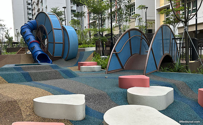 For more fun, a set of rock elements encourage kids to practise their balancing skills. Be sure not to fall into the “water”!