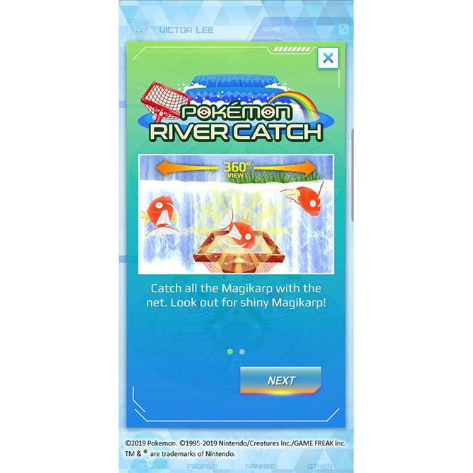 At Level 1, players can use their mobile device as a fishing net in Pokémon River Catch with the objective being to catch Magikarp around Shiseido Forest Valley’s East Trail.