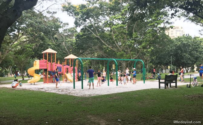 Located close to the car park at Bedok Reservoir Road is a children’s playground. In addition to a two-level play structure, the Bedok Reservoir playground also has swings for kids to play on. Nowadays, the sand of the playground is about as closest reminder you will find of the reservoir’s former life as a sand quarry.
