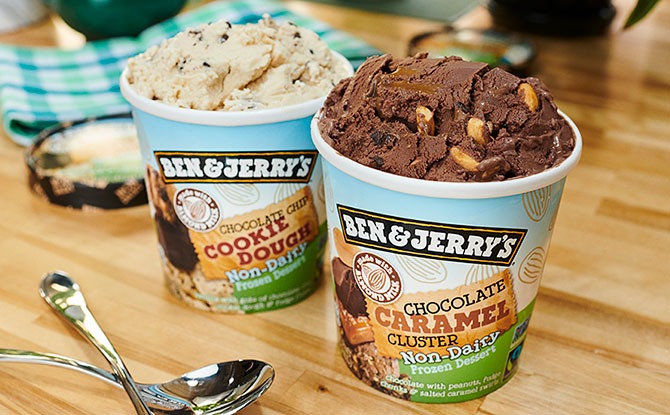 Ice cream lovers can now look out for two Ben & Jerry non-dairy flavours: Chocolate Chip Cookie Dough and Chocolate Caramel Cluster.