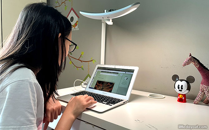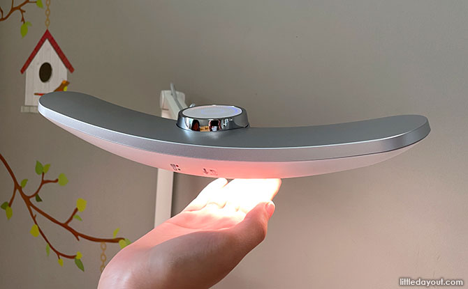 Following the instructions in the quick start guide, she had the lamp up on her study table in a jiffy and proceeded to explore the various features. She had fun turning on the lamp by just placing her hand under the on/off sensor, and fiddling with the rotary knob to toggle between different functions such as colour temperature, brightness level and reading mode.