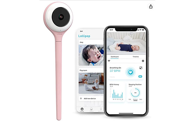 This adorably compact baby monitor is a cool addition to any nursery. Lollipop Smart Wi-Fi based Baby Camera monitors the baby’s respiratory rate as well as sleep position history. Use your smartphone or tablet for monitoring any time. The Lollipop can also detect differences between ambient noises and your child’s crying.
