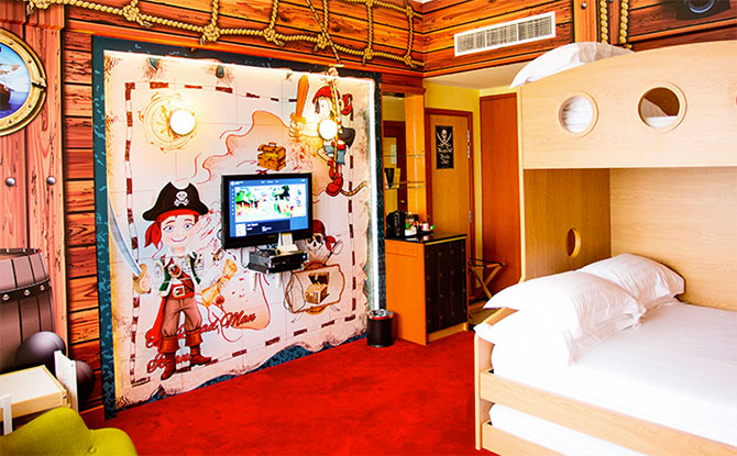 Pan Pacific Singapore has suites just for families! Its Urban Jungle Suites feature separate sleeping zones for parents and children. Kids get a jungle-themed room with an inflatable rocking hippo, a teepee and a treehouse bunk bed that sleeps two children along with welcome amenity, Urban Jungle Survival Pack, and bath toys for fun soak in the tub.
