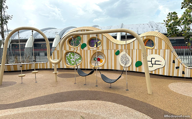 Head up to the rooftop of Anchorvale Village to reach the playground. It has a crow’s nest climbing structure. Balancing steps provide some challenge for kids while there is also an exercise area at the rooftop area. Find out more about the Anchorvale Village playground.