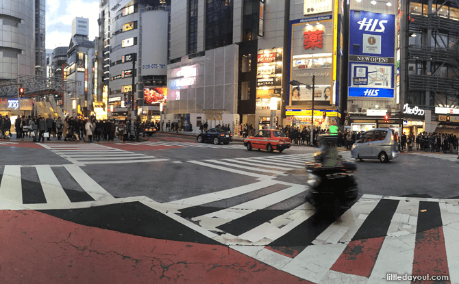 Shibuya Crossing is a famous set of overlapping pedestrian crossings at a major junction near Shibuya Station. It’s the subject of many photos, for its jaw-dropping orderly fashion at which the mayhem of thronging pedestrians arrange their moving bodies.