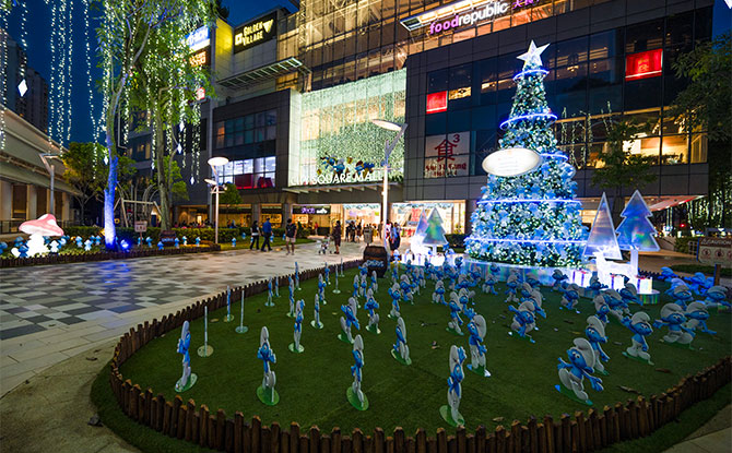 If you are looking for cute decorations in addition to Christmas lights, it doesn’t come much cuter than the Smurfs at City Square Green. The blue Christmas tree in front of the mall is complement by a sea of blue Smurfs. It is all part of the Smurfy Christmas at City Square Mall.