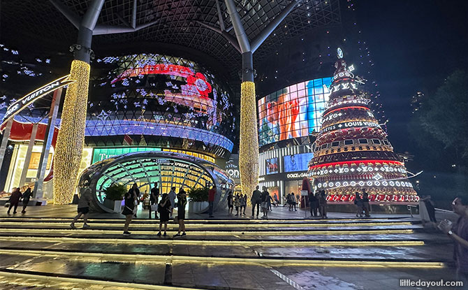 Yes, the light up at ION Orchard is part of Christmas on a Great Street, but we wanted to highlight that its Christmas decorations are one of the most wondrous ones along Orchard Road. There is a Louis Vuitton Christmas tree that you can step inside to view a short video clip, and also a truck where you can take a photo pretending that you can Santa or Santarina delivering a whole pile of LV packages for Christmas!